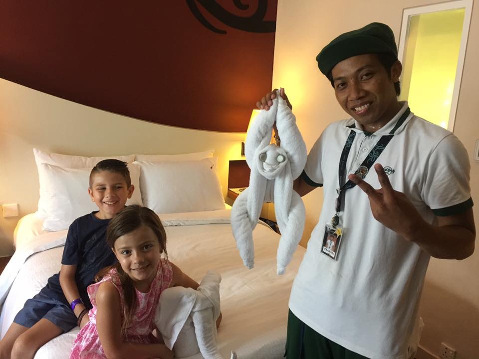 The staff at Hard Rock Hotel Bali, affectionately referred to as band members, are simply awesome. They greet you warmly and are always ready to assist with anything you need. They even took the time to show our kids how to create elephants and monkeys from towels – a fun and thoughtful touch that made our stay even more enjoyable.