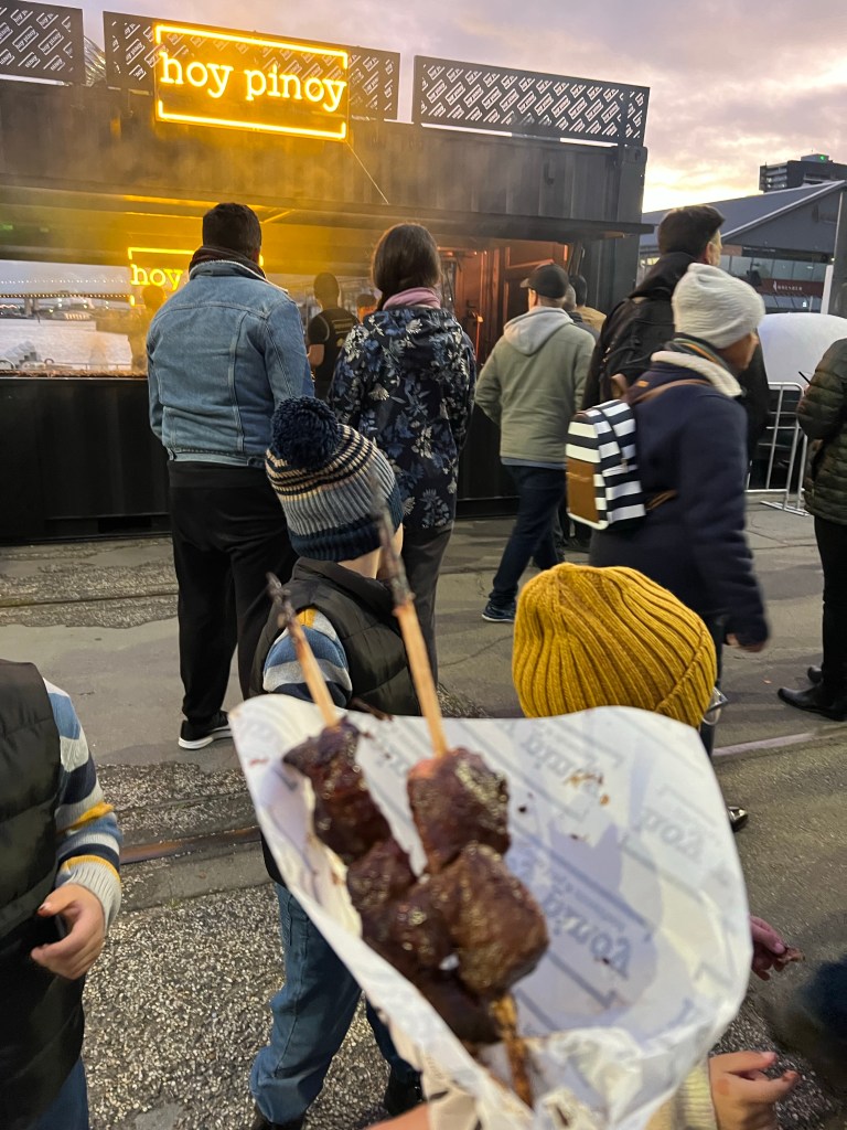 One vendor that stands out is Hoy Pinoy, serving up the best smoky Filipino BBQ skewers that are sure to tantalize your taste buds.