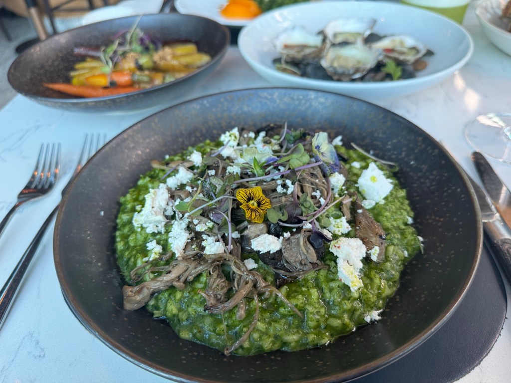 Not to forget the Maple Roasted Carrots with Caramelized Yoghurt and Coriander, adding a delightful sweetness and depth to the meal. And let’s not overlook the Mushroom Carnaroli Risotto with spoon-leaf spinach, Porcini, and Persian Fetta – a comforting yet sophisticated dish that perfectly rounded off the culinary experience.