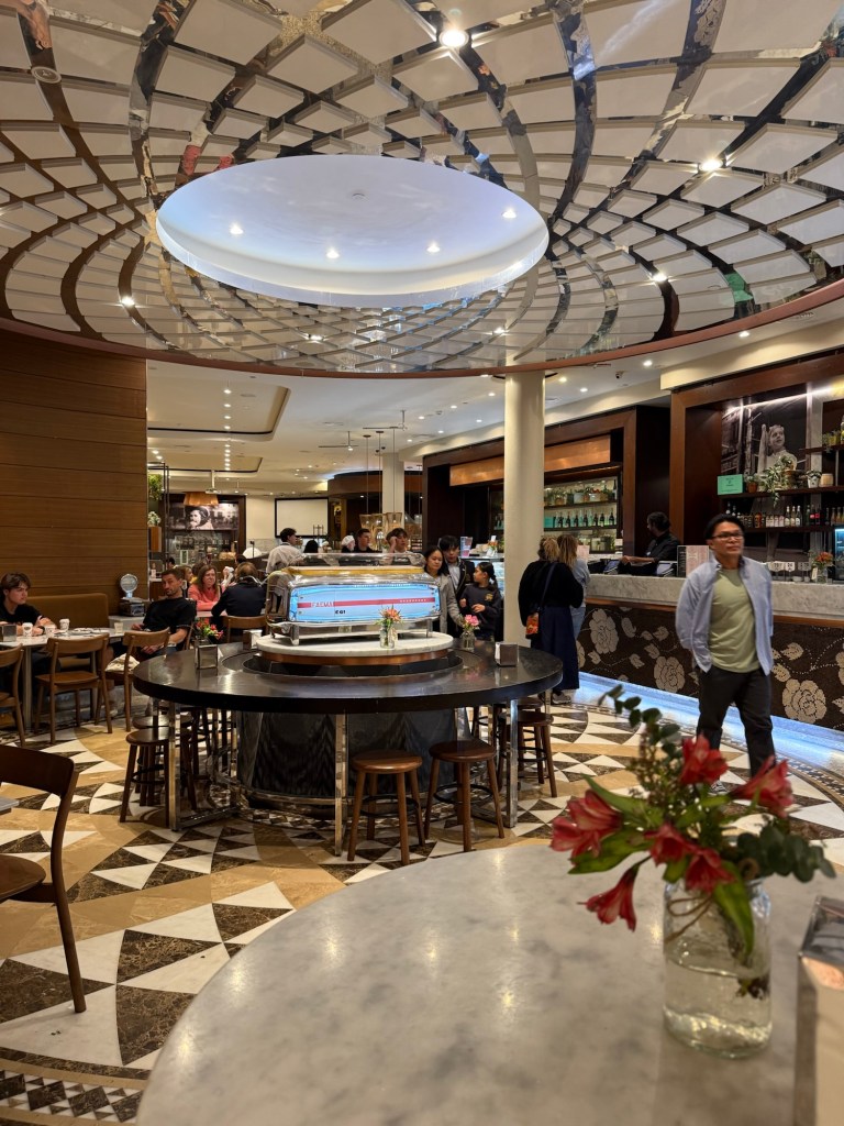 The Roman-inspired interiors, buzzing atmosphere, and that incredible dessert cabinet always draw us back. Whether it’s a hearty bowl of in-house-made pasta, crispy wood-fired pizza, or a slice of cake that’s almost too pretty to eat, Brunetti knows how to turn a simple meal into something memorable.