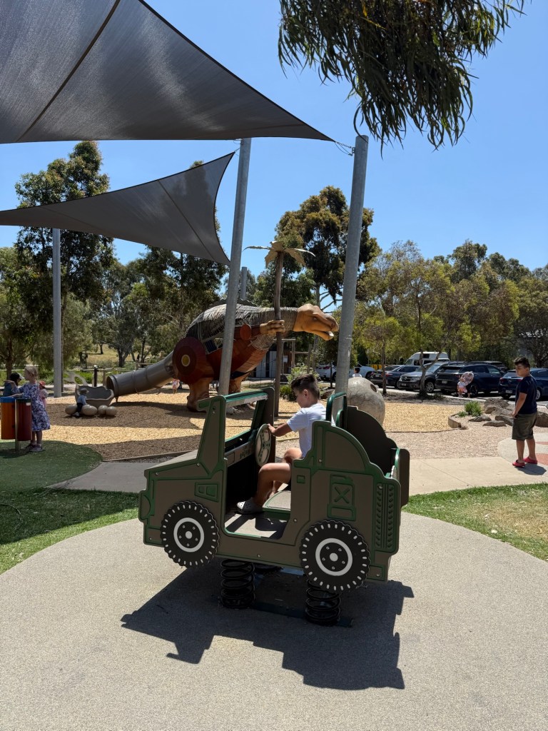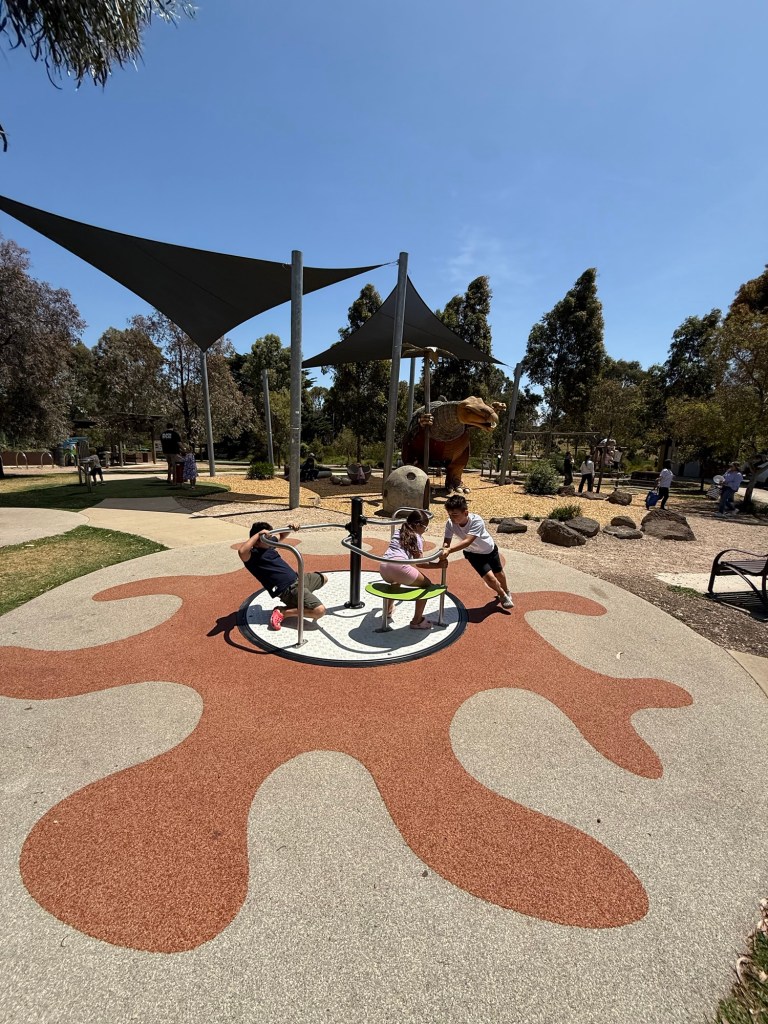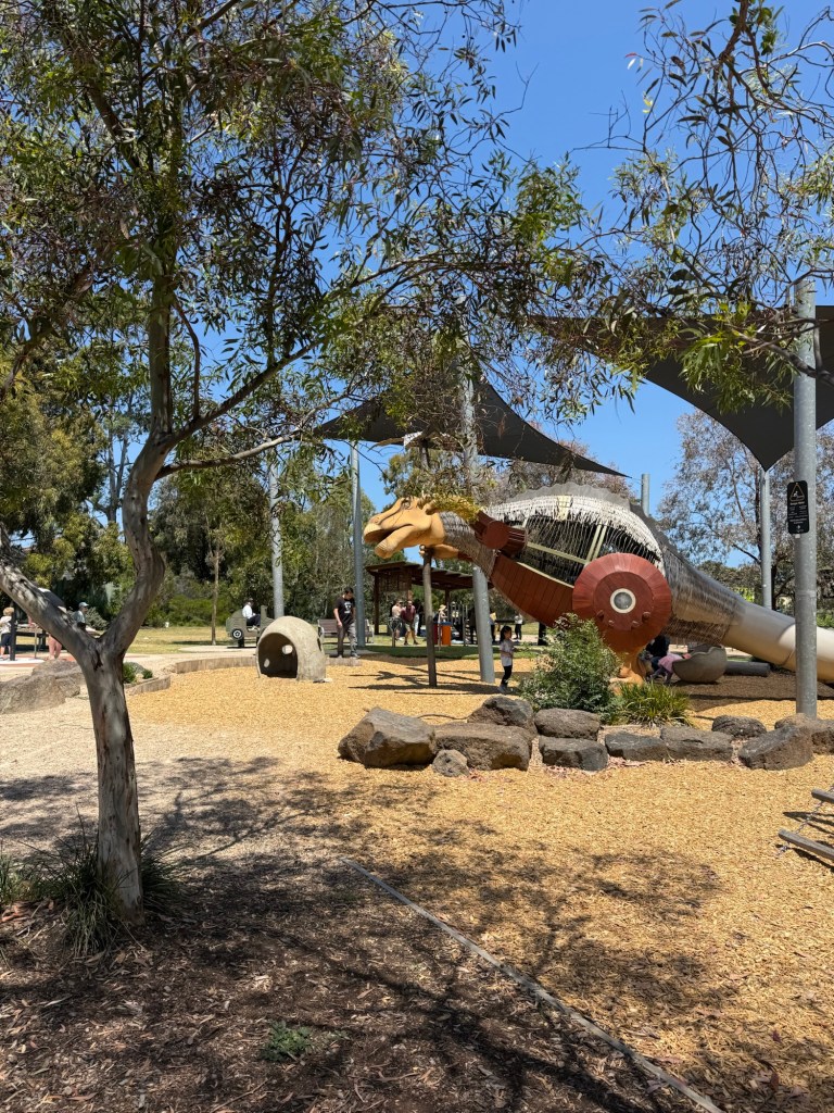This dinosaur-themed playground is best suited to younger children, with climbable dino structures, slides and plenty of open space for free play. It’s a relaxed, no-fuss spot where kids can run around while parents enjoy a slower pace.