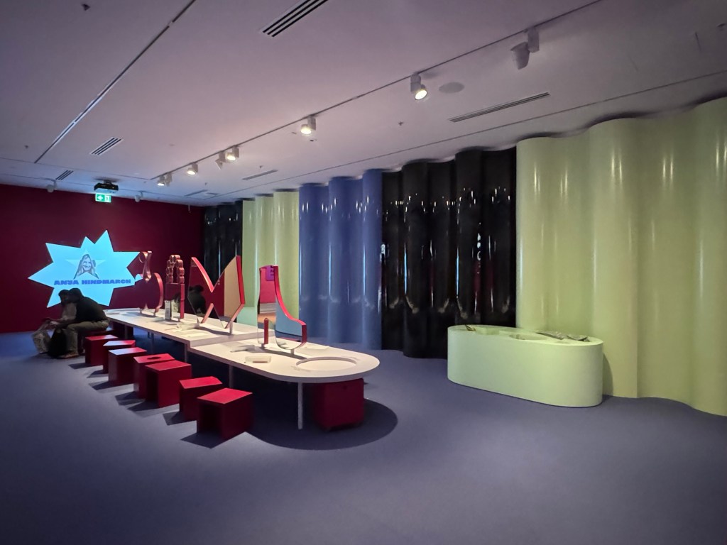 The exhibition space itself is a standout. Designed by Melbourne-based interior designer Danielle Brustman, the bold colours, geometric shapes and playful layout turn the gallery into a party in its own right.