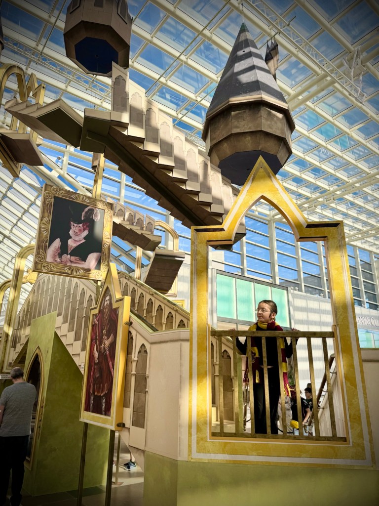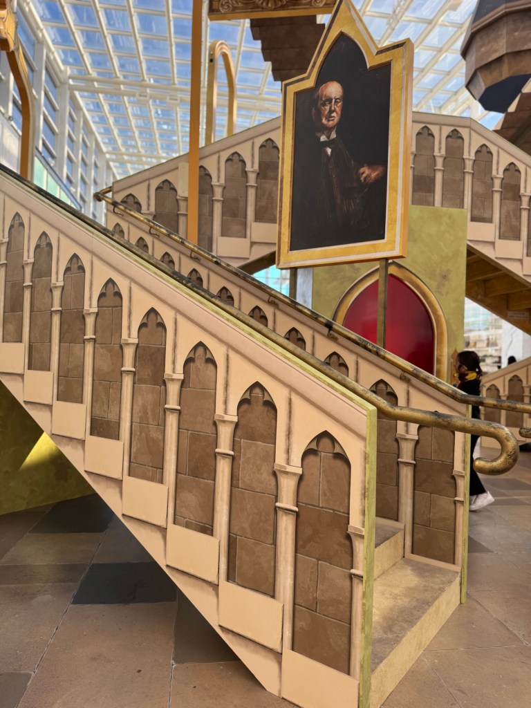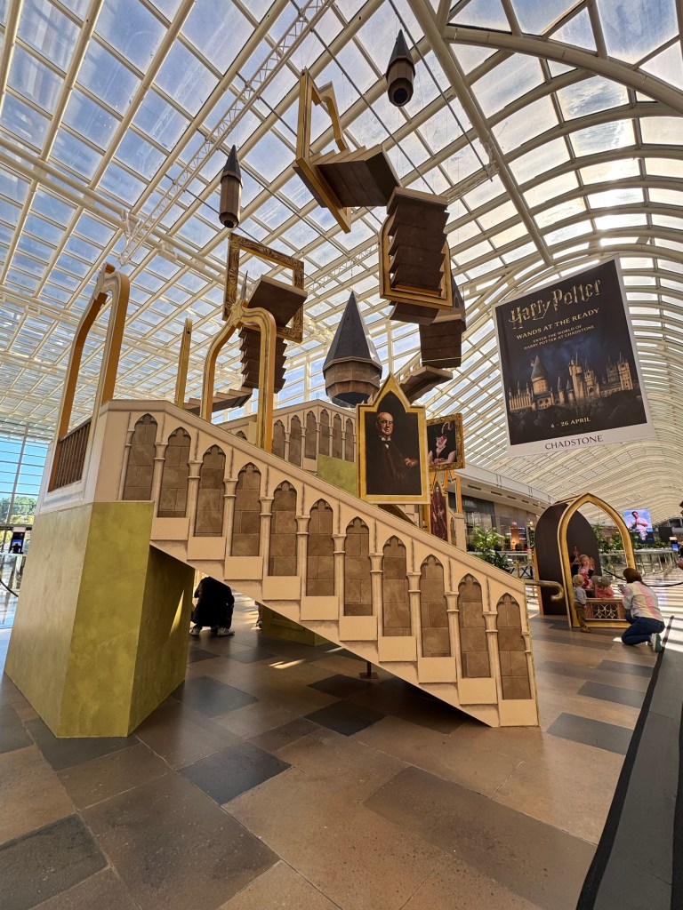 One of the standout features of the activation is the Grand Staircase installation. Set beneath Chadstone’s gridshell roof, this large-scale display recreates the iconic Hogwarts staircase with towering structures, framed portraits and immersive design elements.
